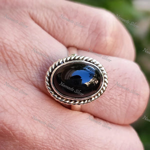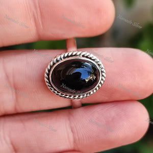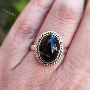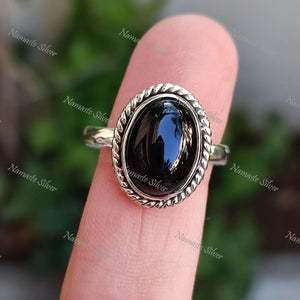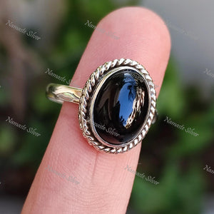 Black Onyx Ring, 925 Sterling Silver Statement Promise Ring, Natural Black Gemstone Oval Handmade Jewelry, July Birthstone, Gift for Her