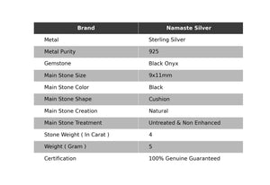 - Features a timeless onyx cushion shape with rich, deep black hues