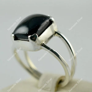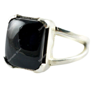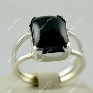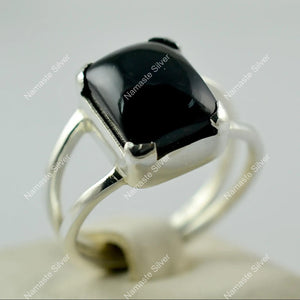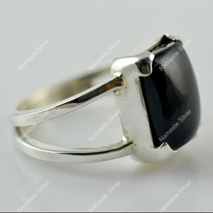 Black Onyx Ring, 925 Sterling Silver Statement Promise Ring, Natural Black Onyx Cushion Gemstone Handmade Jewelry, July Birthstone Boho Gift