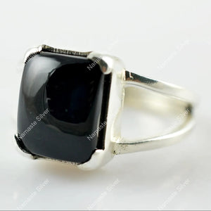 Discover the enchanting elegance of this handmade black onyx ring. Each piece is meticulously crafted, showcasing a captivating cushion-cut black onyx gemstone set in 925 sterling silver. It draws inspiration from the mysteries of the night and the transformative power of onyx. This ring transcends traditional jewelry, embodying strength, intuition, and transformation.
