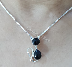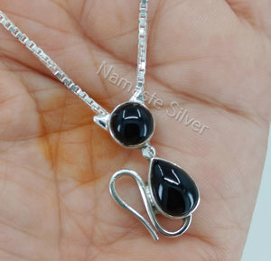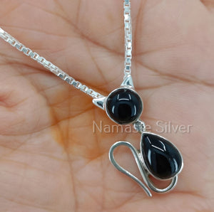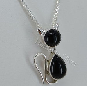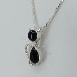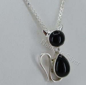 Black Onyx Silver Cat Necklace, 925 Sterling Silver Handmade Cat Pendant Chain, Black Gemstone Animal locket, Gift for Her Birthday