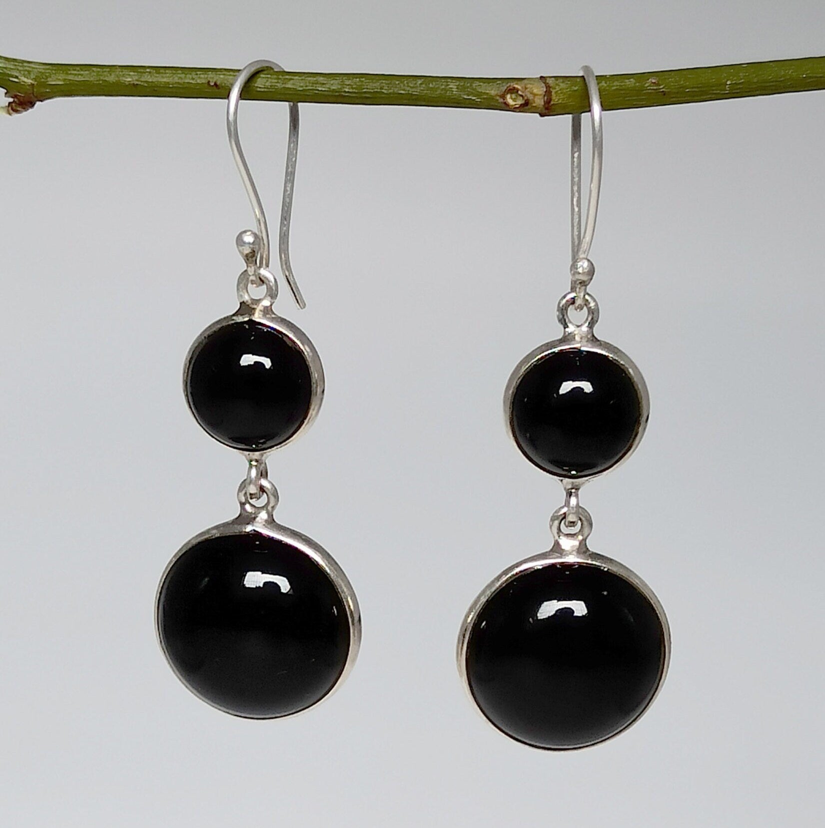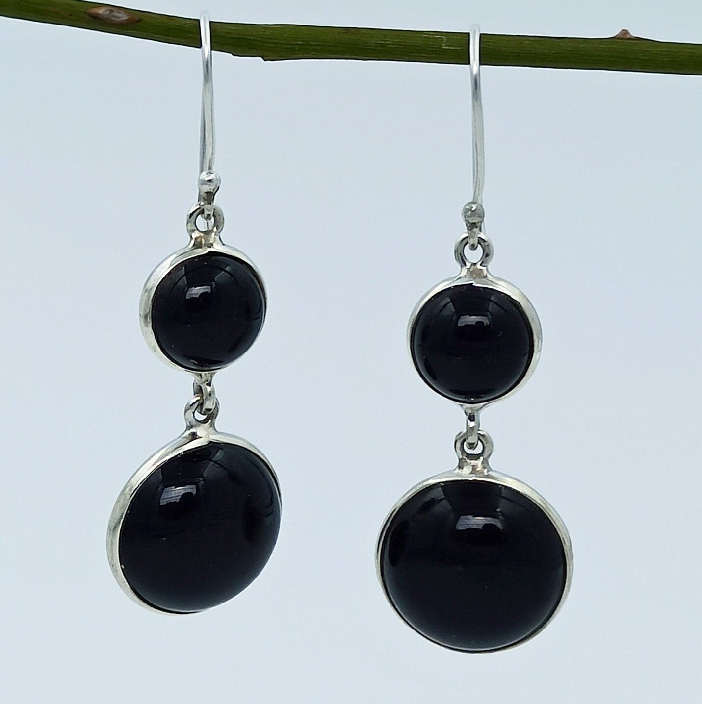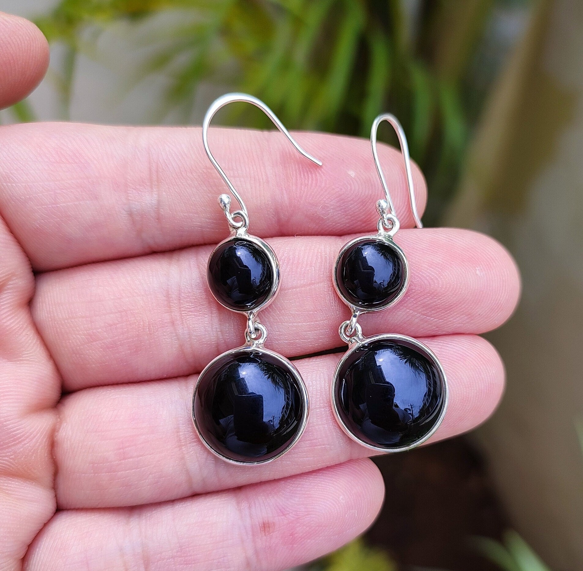 Black Onyx Earrings, 925 Sterling Silver Dangle Earrings, Natural Black Dual Gemstone Handmade Jewelry, July Birthstone, Gift for her