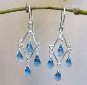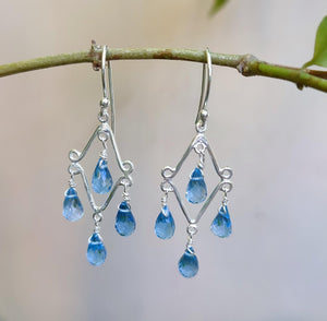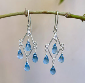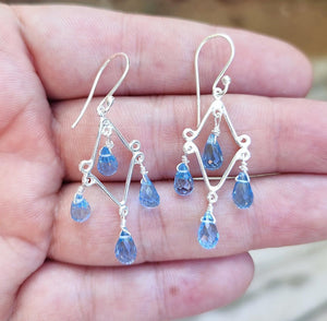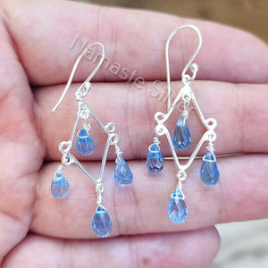 Blue Topaz Earrings, 925 Sterling Silver Handmade Dangle Drop Earrings, Natural Blue Topaz Teardrop Beads Jewelry, Gift for her