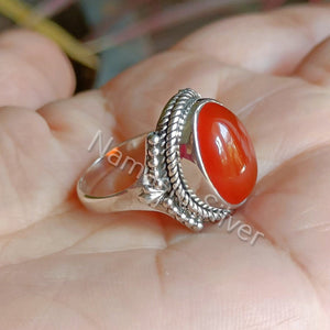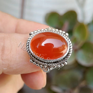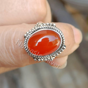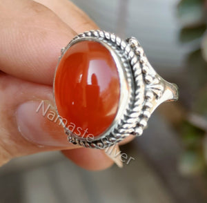 Carnelian Ring, 925 Sterling Silver Handmade Statement Ring, Natural Carnelian Oval Gemstone Boho Jewelry, Gift for Her Birthday Anniversary