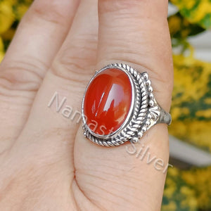 As each ring is handmade, slight variations in the color and size of the stone may occur, adding to its unique beauty and charm. It comes in a beautiful gift box, making it the perfect gift for a special occasion. add a touch of elegance to your look with this Carnelian Oval 925 Sterling Silver Handmade Women's Ring. Order yours today and experience the beauty and healing energy of this stunning gemstone.