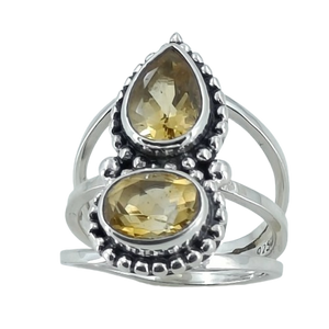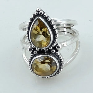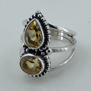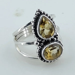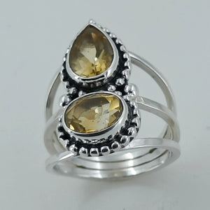 Citrine Double Collet 925 Sterling Silver Handmade Ring - Boho November Birthstone Jewelry - Perfect Gift for Her Birthday Anniversary Christmas Valentine Day