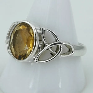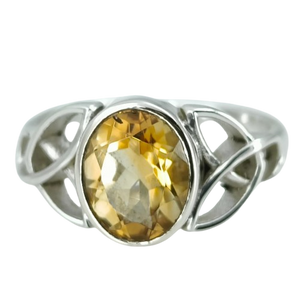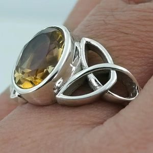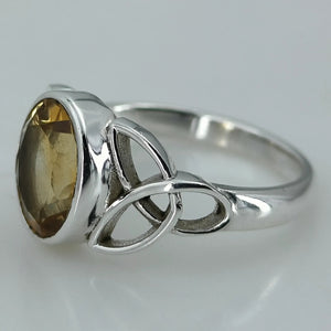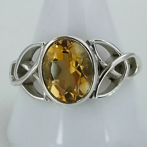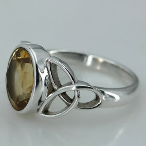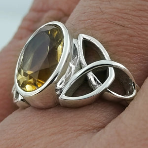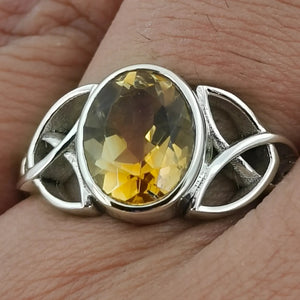 Natural Citrine Oval 925 Sterling Solid Silver Handmade Celtic Knot Ring for Girls / Women.