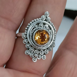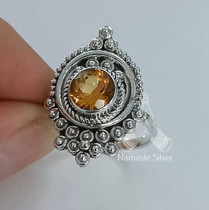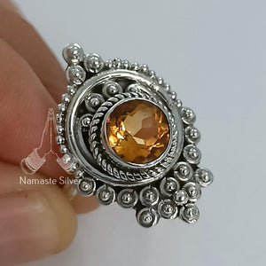 Citrine Ring, 925 Sterling Silver Promise Ring, Natural Yellow Citrine Round Gemstone Handmade Jewelry, November Birthstone, Gift For Her