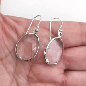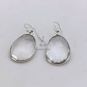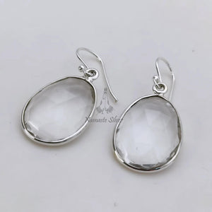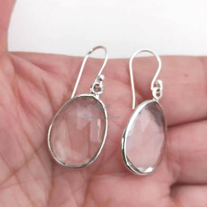 Let these dangle drop earrings be your go-to accessory for every occasion. Each pair is meticulously handmade and handcrafted with clear quartz oval gemstones, capturing a timeless elegance. The 925 sterling silver setting adds a touch of sophistication, ideal for both everyday wear and special moments.
