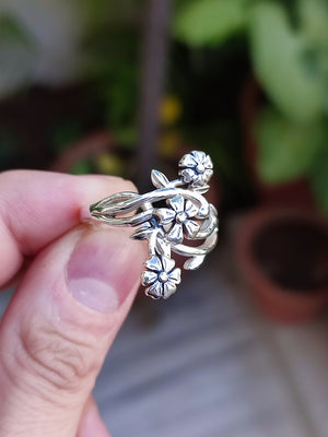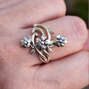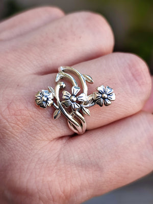 Flower Silver Ring, 925 Sterling Silver Handmade Floral Promise Ring, Flower Jewelry, Gift for Her Birthday, Anniversary, Bridesmaid Gift