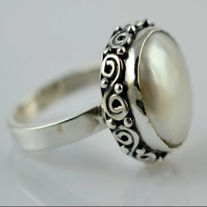 Coin Pearl Ring, 925 Sterling Silver Handmade Statement Promise Ring for Women, Freshwater Pearl Jewelry, June Birthstone, Boho Gift for Her