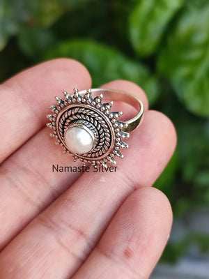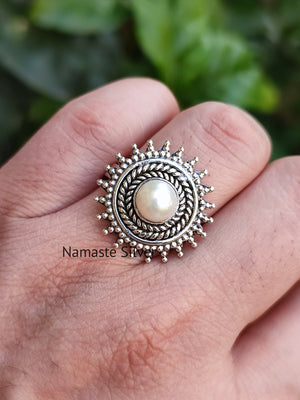 Freshwater Pearl 925 Sterling Silver Handmade Statement Women Boho Ring, Pearl Silver Jewelry, Gift for Her, Valentine day Gift