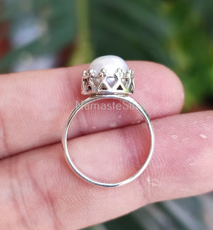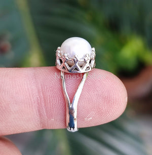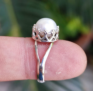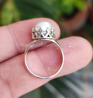 Freshwater Pearl 925 Sterling Solid Silver Handmade Crown Ring for Women, Pearl Silver Ring, Gift for Her, Mother's Day Gift