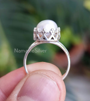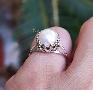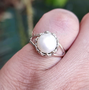 Each ring is lovingly crafted by hand, ensuring no two are exactly alike. Skilled artisans pour their passion into creating a piece that whispers with quality and attention to detail. The gentle shimmer of the pearl and the soft lustre of the silver combine to create a ring that's both classic and captivating.