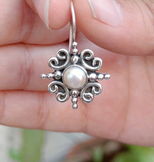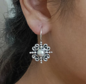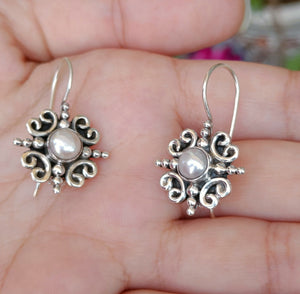 Home Freshwater Pearl Silver Handmade Dangle Earrings, Pearl Jewelry, Pearl Dangle Earrings, Bridal Earrings, Gift for Her, Pearl Silver Earrings