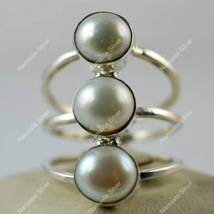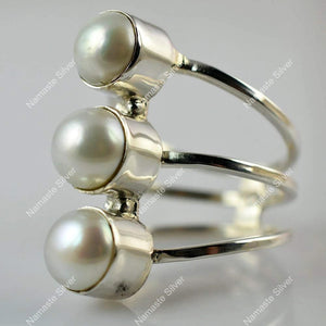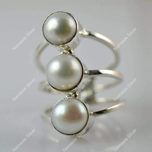 Freshwater Triple Pearl Ring, 925 Sterling Silver Statement Promise Ring, Pearl Handmade Boho Jewelry, June Birthstone, Unique Gift For Her