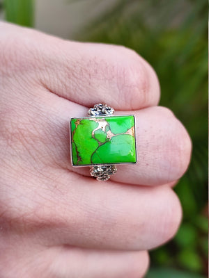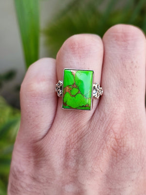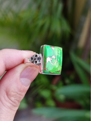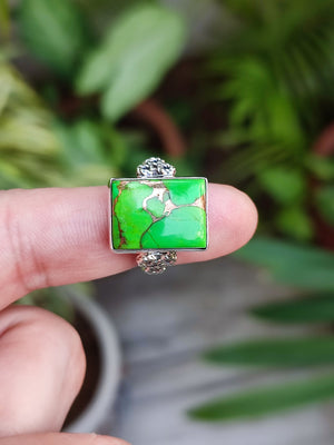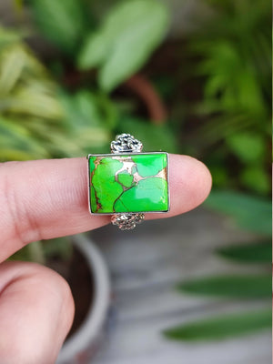 Stand out of the crowd with this lovely Green Copper Turquoise ring on your finger.
