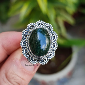 Green Jade Ring, 925 Sterling Silver Statement Promise Ring, Natural Jade Oval Gemstone Handmade Boho Jewelry, March Birthstone Gift for Her