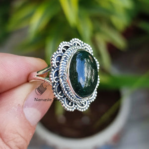 Elevate your style with the Mystic Jade Bloom Ring, an enchanting piece that captures the essence of harmony and elegance. With a stunning natural jade gemstone set in a 925 sterling silver band, this ring evokes both bohemian charm and modern sophistication.