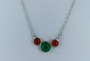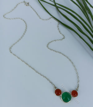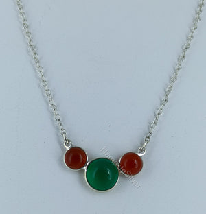 Enhance your jewelry collection with this handcrafted Green Onyx & Carnelian Necklace, made from 925 sterling silver. Featuring a beautiful trio of natural gemstones, this pendant combines the deep green hues of Onyx with the warm, earthy orange-red tones of Carnelian, creating a balance of elegance and energy.