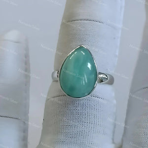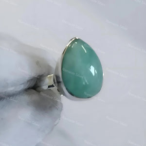 Home Handmade Natural Amazonite Pearshape Ring | 925 Sterling Silver Women's Jewelry | Boho Gemstone Statement Ring | Gift for her Birthday