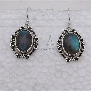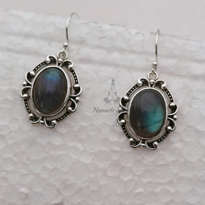 Featuring a natural oval gemstone with a stunning iridescent glow, these earrings are beautifully set in genuine 925 sterling silver. The vintage-style oxidized frame adds a bohemian twist to this labradorite jewelry, making it perfect for those who appreciate both spirituality and real style.