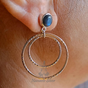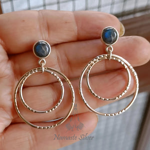 Bring a touch of enchantment to your look with these handcrafted earrings. Their bohemian double hoop styling pairs beautifully with the iridescent beauty of labradorite, making them a versatile addition to any jewelry collection. Whether you're dressing up evening wear or embracing your inner mystic, these dangle drop earrings are the perfect accent.