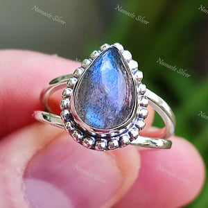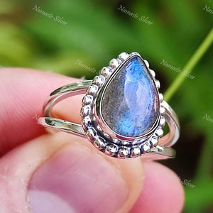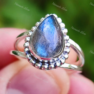 Home Labradorite Ring, 925 Sterling Silver Dainty Ring, Natural Labradorite Pear Shape Gemstone Handmade Boho Jewelry, Birthstone Gift for Her