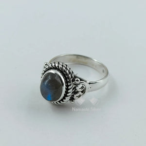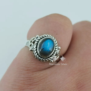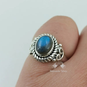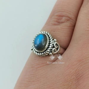 Labradorite Ring, 925 Sterling Silver Handmade Promise Ring, Natural Labradorite Oval Gemstone Jewelry, Birthstone Gift for Her Birthday