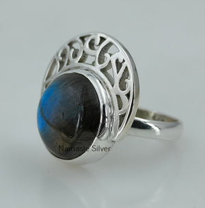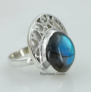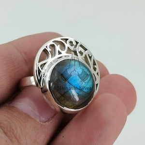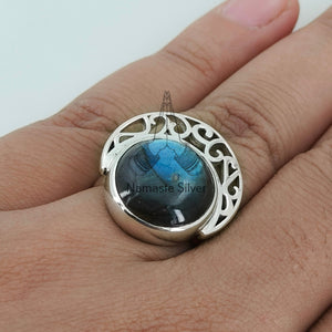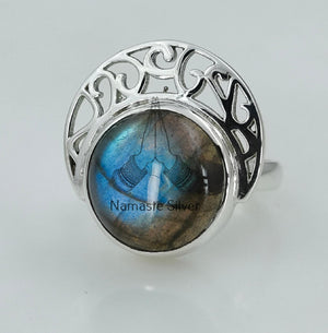 Home Labradorite Ring, 925 Sterling Silver Handmade Statement Promise Ring, Natural Labradorite Round Gemstone Jewelry, Gift for Her