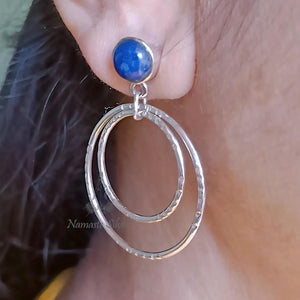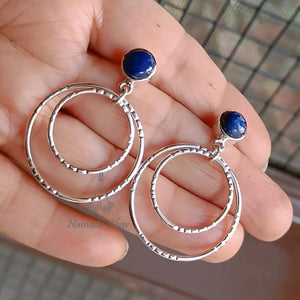 Home Lapis Lazuli Earrings, 925 Sterling Silver Double Hoop Earrings, Natural Blue Round Gemstone Handmade Dangle Earrings, Unique Gift for her