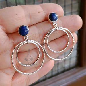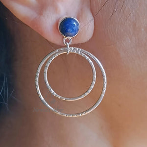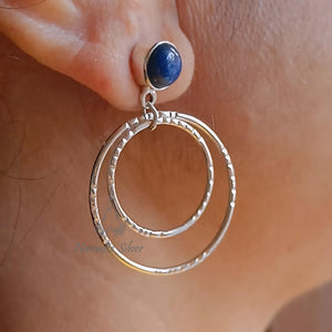 Lapis Lazuli Earrings, 925 Sterling Silver Double Hoop Earrings, Natural Blue Round Gemstone Handmade Dangle Earrings, Unique Gift for her