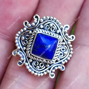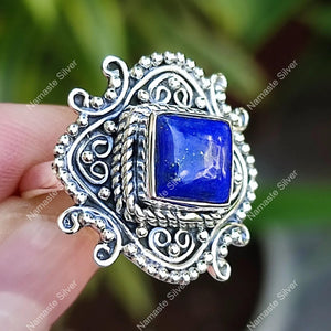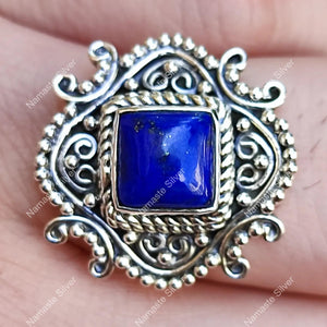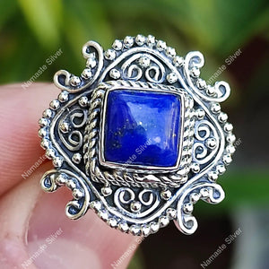 Lapis Lazuli Ring, 925 Sterling Silver Handmade Statement Ring, Natural Blue Gemstone Cushion Jewelry, September Birthstone, Gift for Her