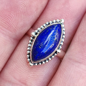More than just a ring, this is a talisman of wisdom, truth, and inner strength. Lapis lazuli has been revered for centuries for its connection to royalty and the cosmos. Wear it to channel your inner queen, make a bold statement, or simply add a touch of celestial magic to your everyday look.