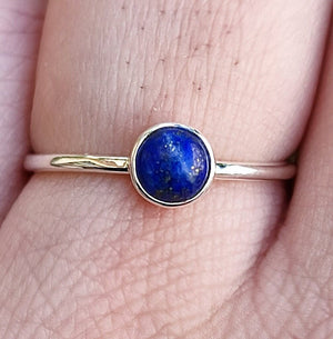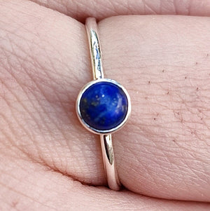 This adorable ring features a stunning 6.0mm round Lapis Lazuli gemstone, known for its rich, celestial blue hues and sparkling pyrite flecks. Set in a delicate yet sturdy 925 sterling silver band, it's perfect for everyday wear or adding a touch of magic to special occasions.
