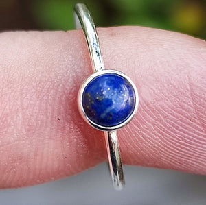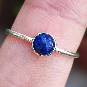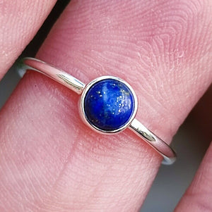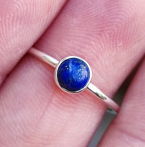Lapis Lazuli Round Sterling Silver Handmade Women Cute Ring, Lapis Lazuli Silver Ring, Dainty Minimalist Ring, Gift for her Birthday