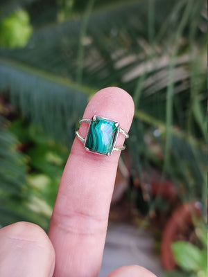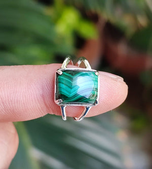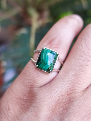 Malachite Cushion Shape 925 Sterling Silver Handmade Women Ring, Gift for Her, Gemstone Ring, Malachite Silver Ring
