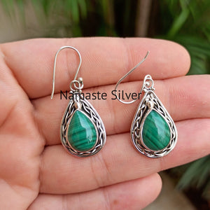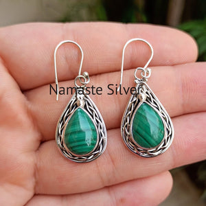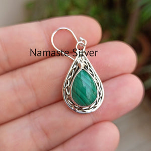 Malachite Pearshape 925 Sterling Silver Handmade Dangle Drop Earrings for Women