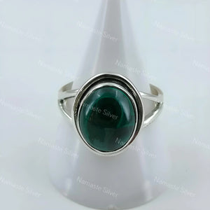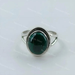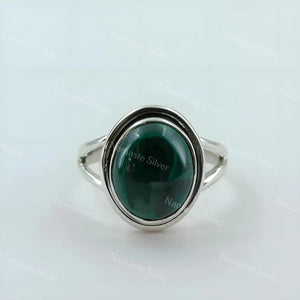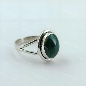 Malachite Ring, 925 Sterling Silver Statement Promise Ring, Natural Green Gemstone Oval Handmade Jewelry, April Birthstone, Gift For Her