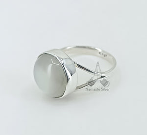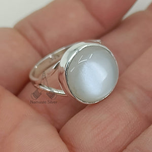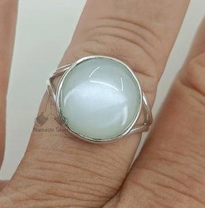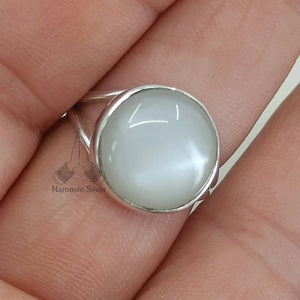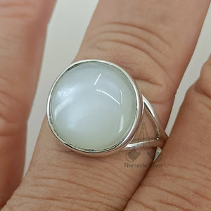 Moonstone Round Sterling Silver Handmade Ring Statement Boho Jewelry Gift for her Birthday Anniversary Wedding Christmas Valentine's Day
