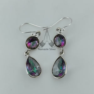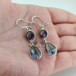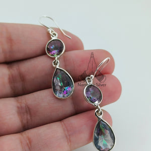 Home Mystic Topaz 925 Sterling Silver Handmade Dangle Earrings Boho Gift for her Birthday Anniversary Christmas Valentine's Mother's Day