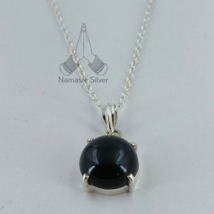 Home Natural Black Onyx Round 925 Sterling Silver Handmade Pendant Chain Necklace Boho Gemstone Jewelry Gift for her Birthday Anniversary