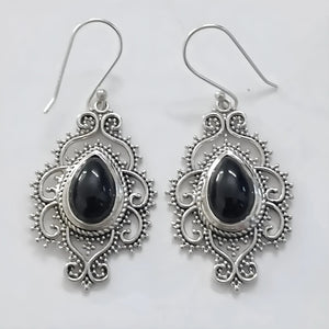 Embark on a journey into the enchanted nightfall with our exquisite handcrafted Sterling Silver Black Onyx Dangle Earrings. Inspired by the mystical allure of the night sky, these earrings are adorned with natural pear-shaped Black Onyx gemstones that shimmer with captivating beauty.