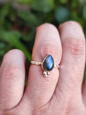 Stand out of the crowd with this lovely natural Labradorite ring on your finger.