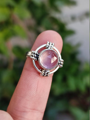 Natural Rose Quartz 925 Solid Sterling Silver Handmade Women Ring, Rose Quartz Silver Ring, Pink Gemstone Round Ring, Valentine Gift