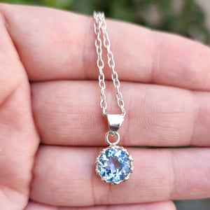 Navya Craft 925 Solid Sterling Silver Blue Topaz round Handmade Women Necklace Christmas Anniversary Birthday Valentine Day Gift wife her mother sister best friend