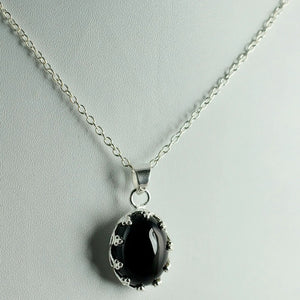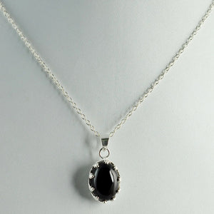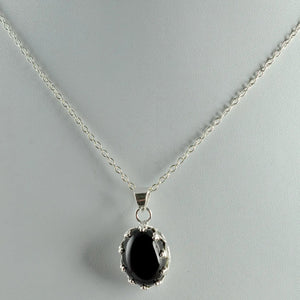 Black Onyx 925 Solid Sterling Silver Handmade Pendant Chain Necklace for Women Length 16 to 24 Inches Metal: Genuine 925 Solid Sterling Silver Gemstone Used: Genuine Black Onyx Gemstone Shape: Oval CabStone Size: 16.0 X 12.0 mmGemstone Color: BlackShip Worldwide from INDIA through Registered Air Mail Service with tracking number provided.Stunning 925 sterling silver and genuine black onyx handmade Necklace. This gorgeous and unique necklace is sure to impress anyone. Beautiful and unique handmade silver jewelry inspired by the Nepalese, Tibetan and Indian culture. Black Onyx Meaning and Healing Properties Onyx is a type of chalcedony, which is a type of silica mineral. Onyx is a balancing, grounding stone, particularly black onyx. It is thought to help stimulate the root chakra.Your root chakra is your grounding energy center. Other colors of onyx stimulate different chakras in your body and are associated with different meanings as a result. Onyx helps to reduce the intensity of emotions, whether negative or positive and balances conflicting energies and drives. It is associated with good fortune and judgment, and also with fidelity. Onyx, like jade, is a great stone to wear if you are setting out on a new journey and require strength and commitment, whether that journey is a personal one, a business venture, or a relationship. If you have difficulty sticking with tasks, decisions, or relationships, onyx may help you to remain grounded in your choices and see your decisions through. Those who have difficulty with commitment can benefit from wearing onyx or keeping it nearby.