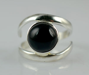 Black Onyx Ring, 925 Sterling Silver Handmade Statement Promise Ring, Natural Black Gemstone Round Jewelry, July Birthstone, Gift for her
