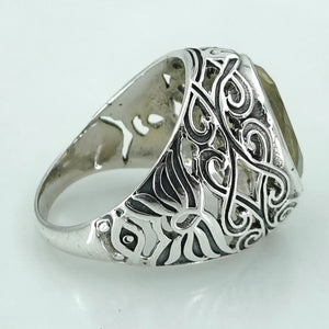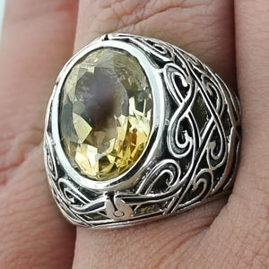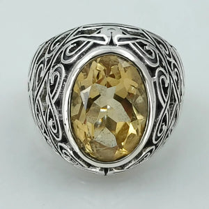 Introducing the "Sunlit Elegance" Citrine & Sterling Silver Statement Promise Ring—a unique piece inspired by the vibrant warmth of the sun and the magical stories of ancient gemstones. This exquisite ring is handcrafted with care, featuring a stunning oval-shaped citrine set in 925 sterling silver, symbolizing joy and prosperity.