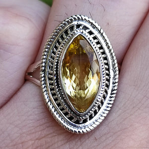 Navya Craft Citrine Marquise Shape 925 Sterling Silver Handmade Women Ring, Yellow Gemstone November Birthstone Jewelry Sizes 4 to 13 Christmas Anniversary Birthday Valentine Day Gift wife